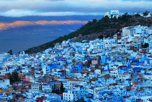 Chefchaouen, bleu city is a popular destination for all tourits in Morocco as well, as it is the only blue city in Morocco and offers many native handicrafts that are not available elsewhere in Morocco, such as wool garments and woven blankets. The goat cheese native to the area is also popular with tourists.